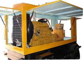 互助柴油发电机组/移动柴油发电机组设计独具创新,机动性高、重心低、制动安全、制造精良、外形美观。 互助拖车车架采用槽梁焊接成框架结构,节点选择合理、强度高、刚性好;同时装有钢板弹簧悬架结构;拖车采用高度可调节插销式牵引架,适用于各种高度牵引车;采用圆形钢管焊接直通式车轴,结构紧凑,安全可靠;车架四角设有机械式支撑装置,配备惯性行车制动、驻车制动和脱离应急制动,确保机组在各种状况下的安全;车架前端设有支撑轮,具备承受机组垂直载荷的功能的同时还具备导向功能;整车配备转向和刹车指示灯,同时装有尾灯标准插头